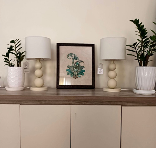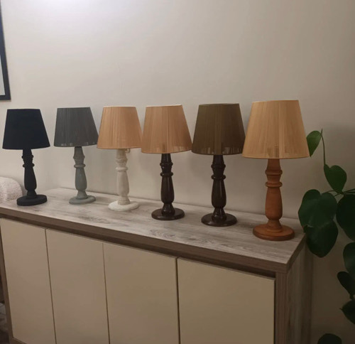 آباژور رومیزی چوبی پایه خراطی پتینه