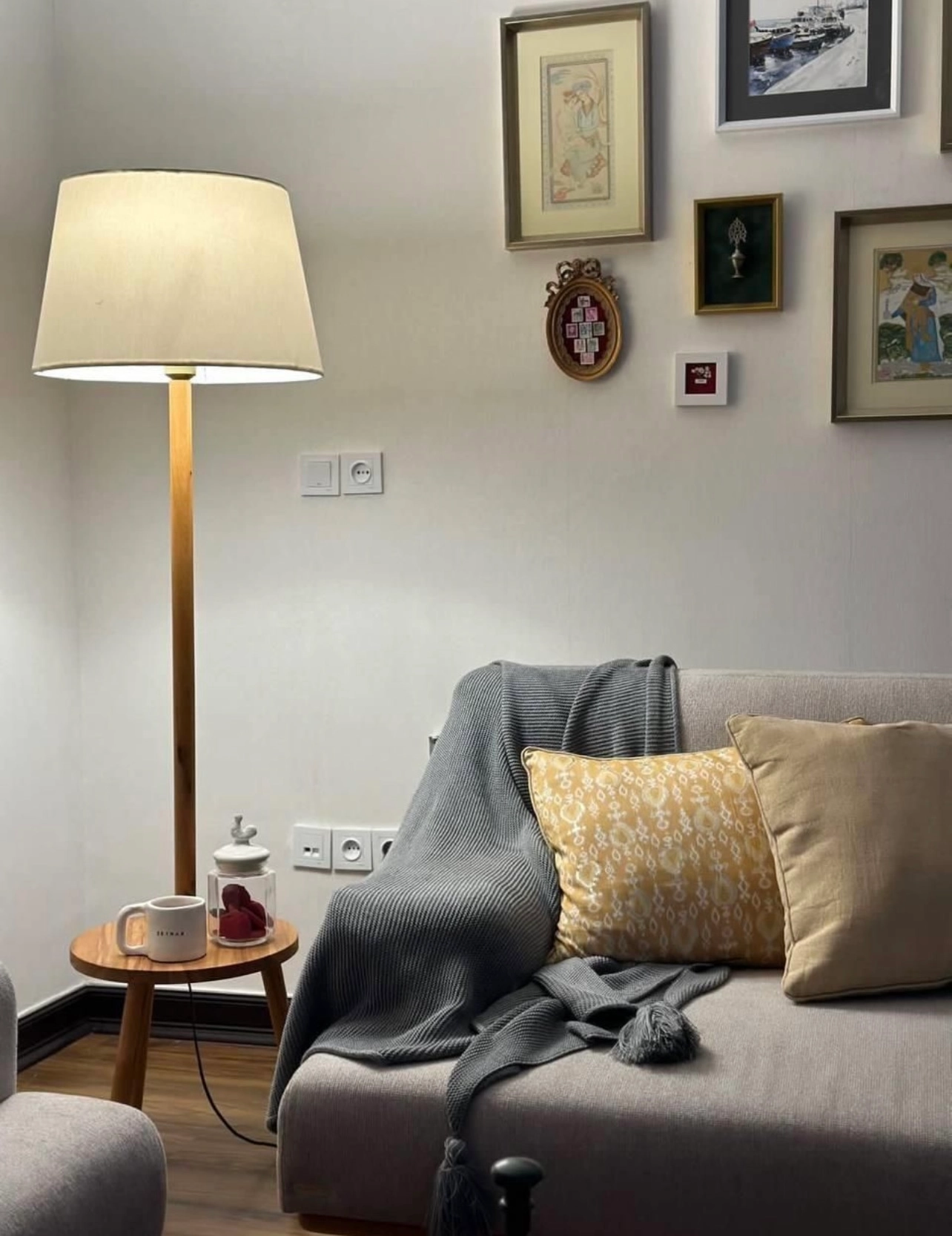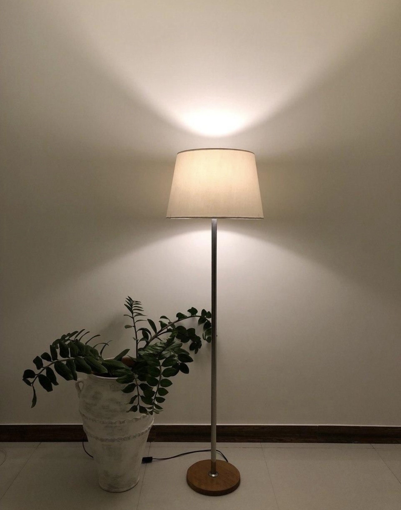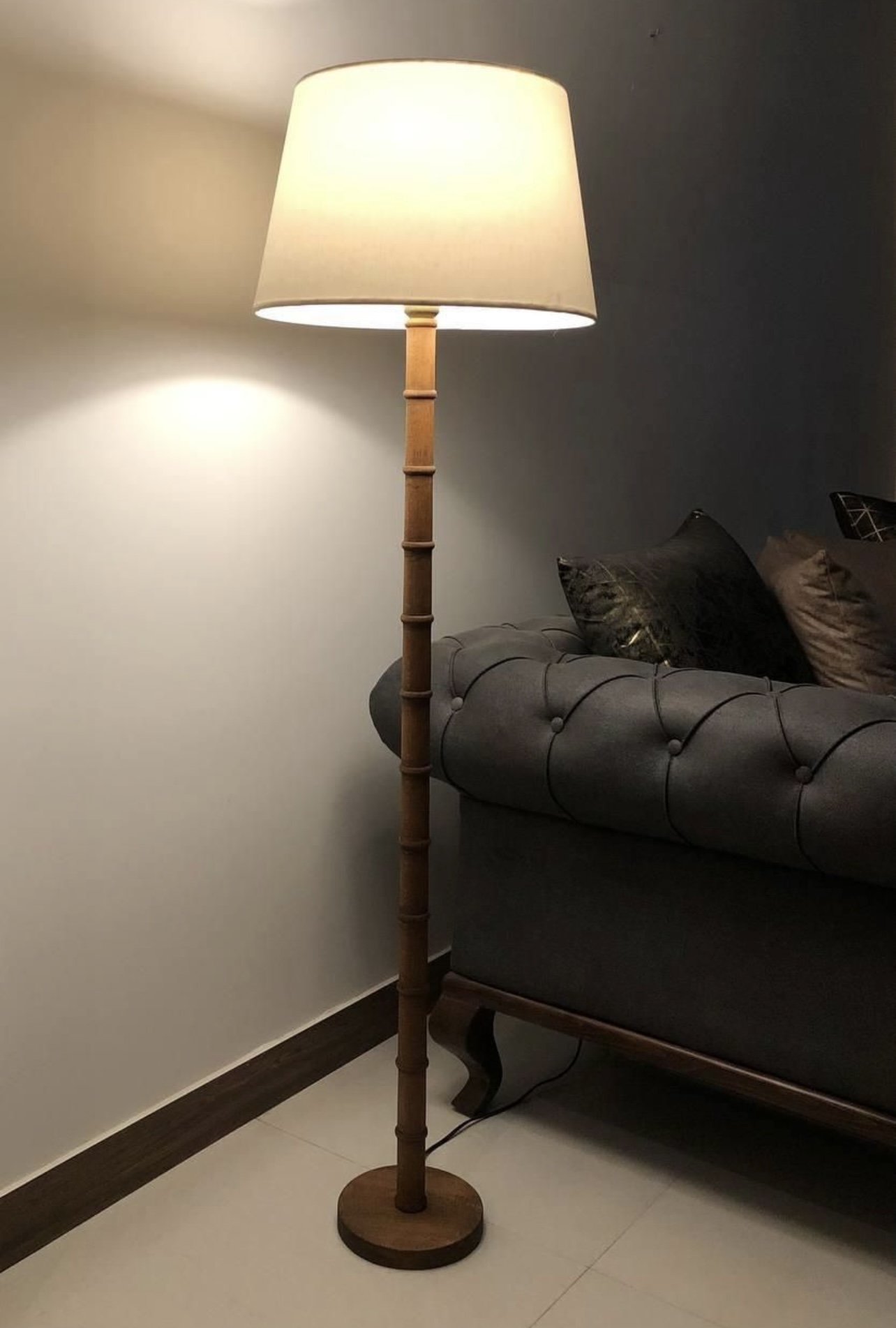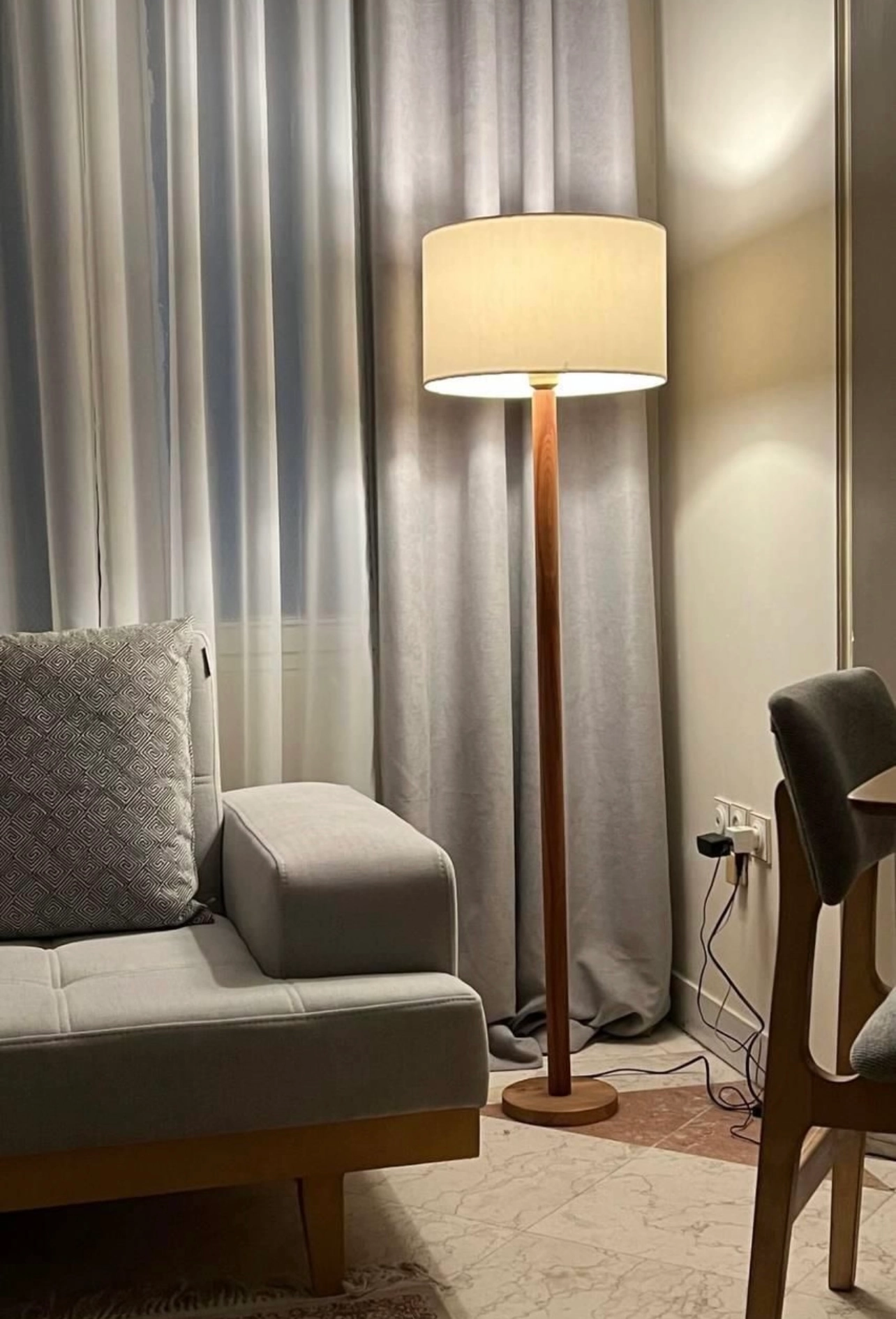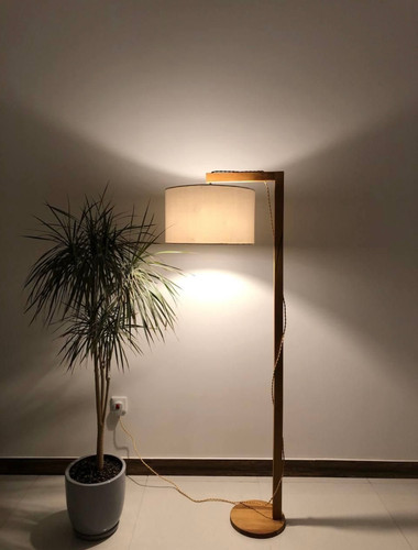 آباژور ایستاده کنار سالنی چوبی نور خطی