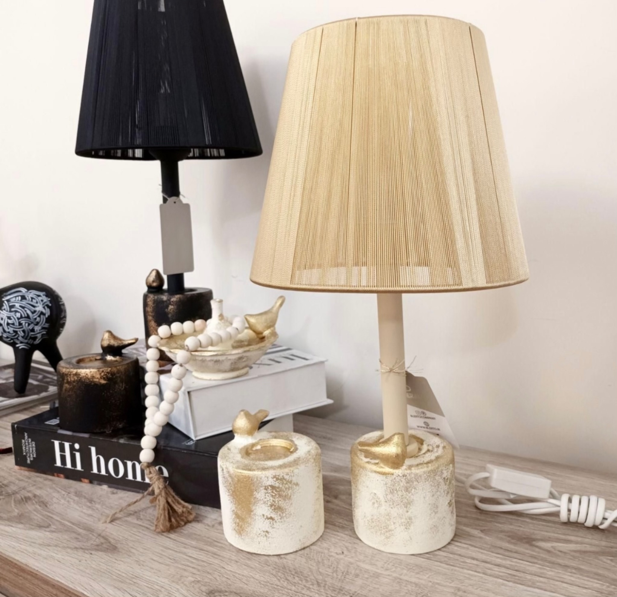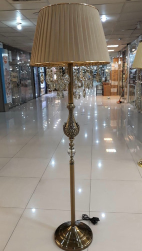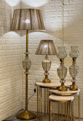 آباژور ایستاده و رومیزی کنار سالنی کریستالی با پایه طلایی