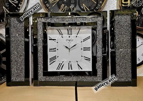 ساعت دیواری سه تیکه آینه ای نگین دار