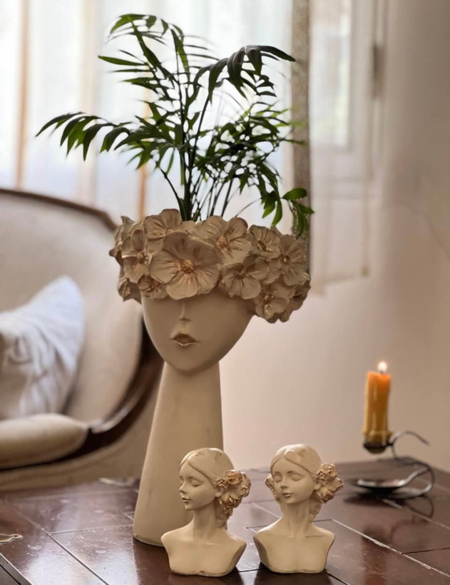 گلدان رومیزی دکوراتیو طرح دختر با تاج گل