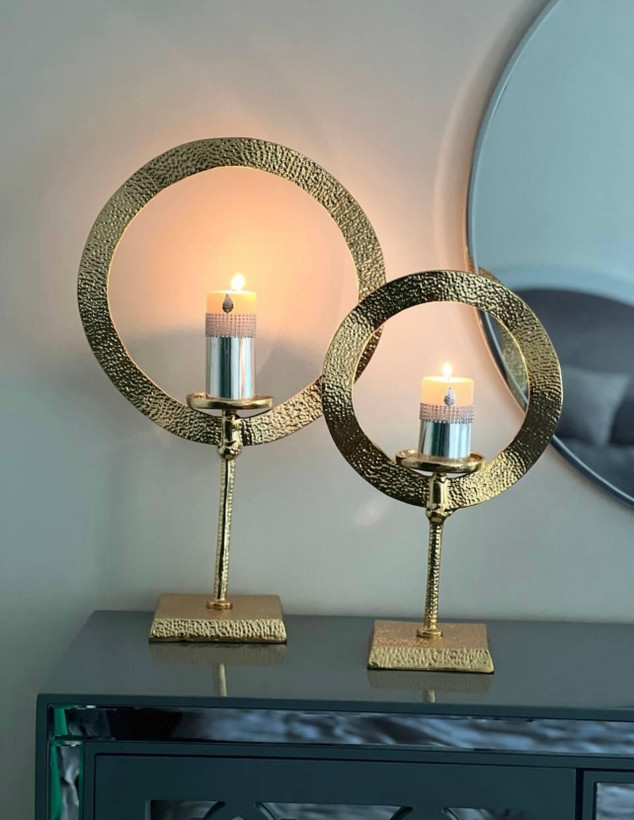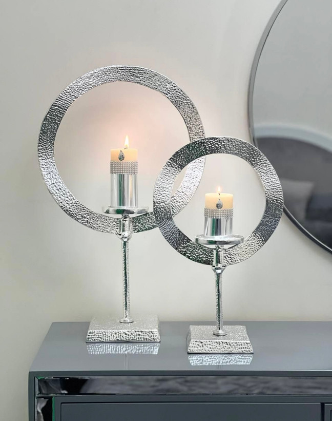 ست جاشمعی گرد پایه دار چکش کاری شده آلمینیومی دوتایی