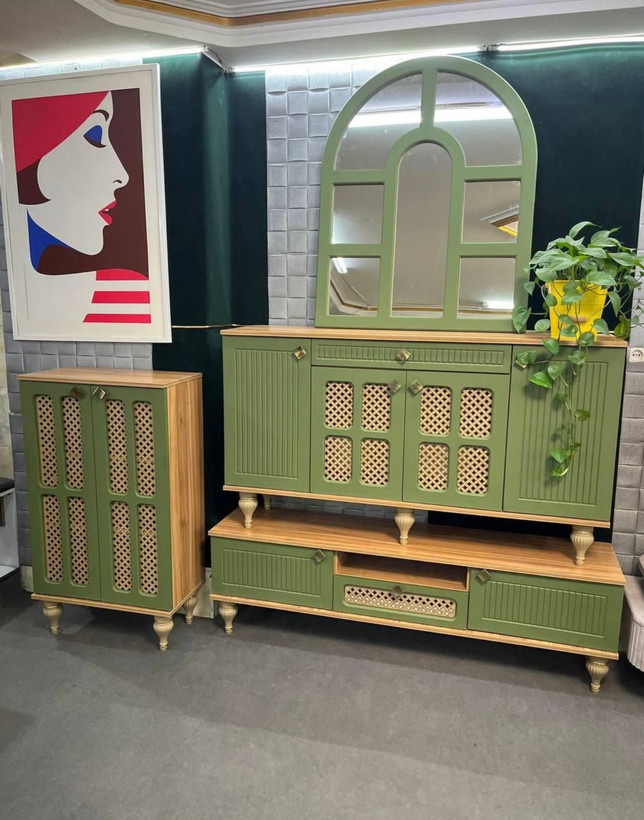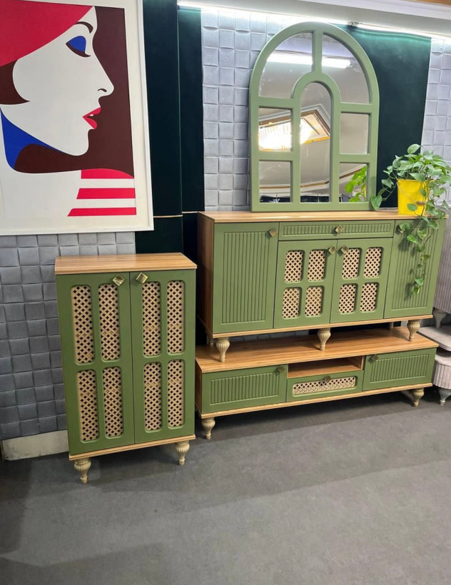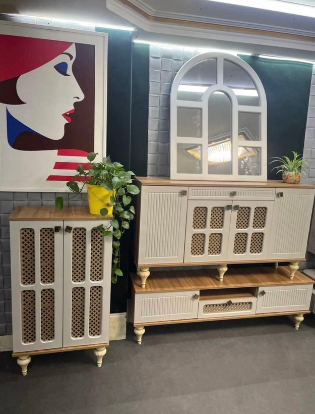 ست آینه کنسول میز تی وی جاکفشی مدل حصیریبا رنگ جدید