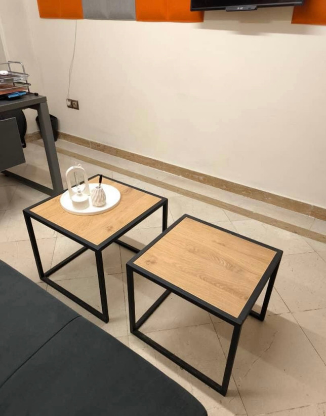 میز عسلی سه تیکه چوبی فلزی