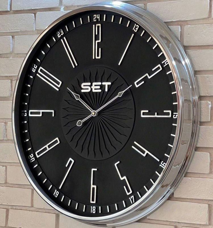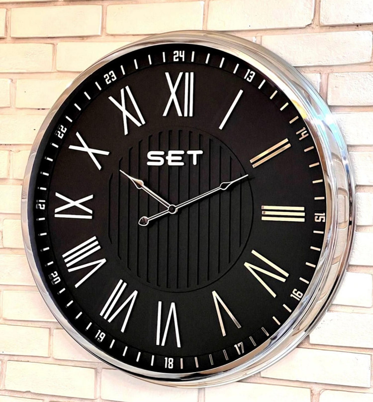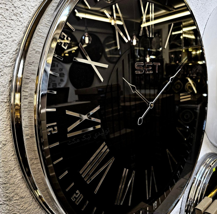 ساعت دیواری فلزی مشکی سیلور با طراحی خاص در دونوع عدد یونانی و عدد لاتین